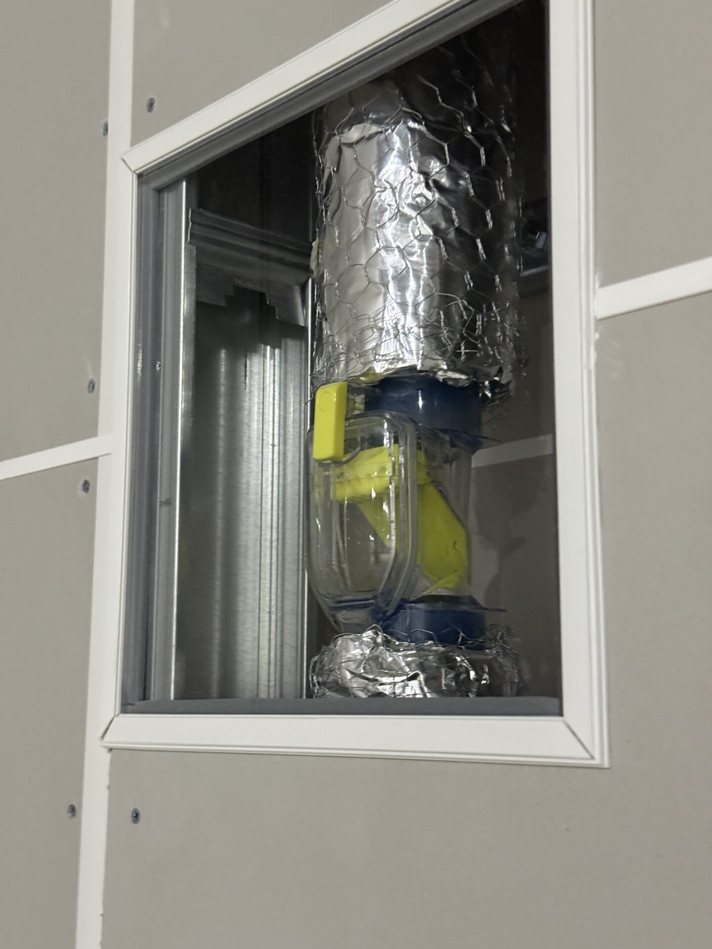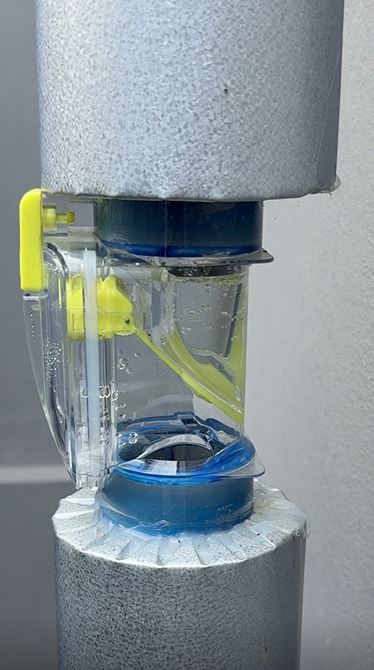 工場倉庫においては、屋内外のさまざまな環境下で安定して使用できる設備が求められます。そのため、縦横いずれの配管にも対応でき、耐候性に優れた当社のエアカットバルブオールクリアが採用されました。本製品は樹脂製で透明感があり、点検口が大きいため清掃が容易で、日常のメンテナンス性も高く評価されています。さらに、クリアタイプならではの外観性も評価をいただきました。