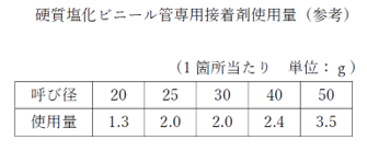 接着剤は、塩ビ管専用の接着剤を使用し、受け口内面及び差口外面に均一に素早く塗る必要があります。このとき、接着剤をつけすぎると、接着剤が流れ出し、弁体が固着して動作不良を招きます。その結果、漏水につながる可能性があります。