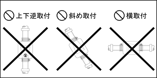 - 製品の機能が損なわれますので横向きや傾斜させて取り付けないでください。